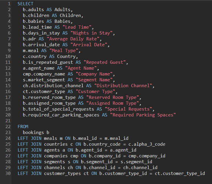 A single SQL query was created to get the required data from the database for the 3 dashboards. This data source was added into Looker Studio to build the dashboards.